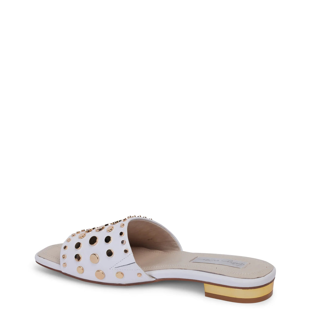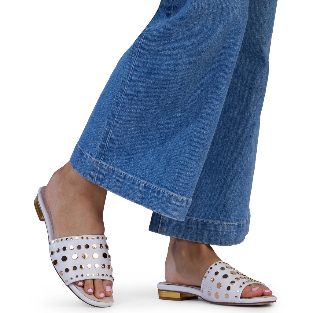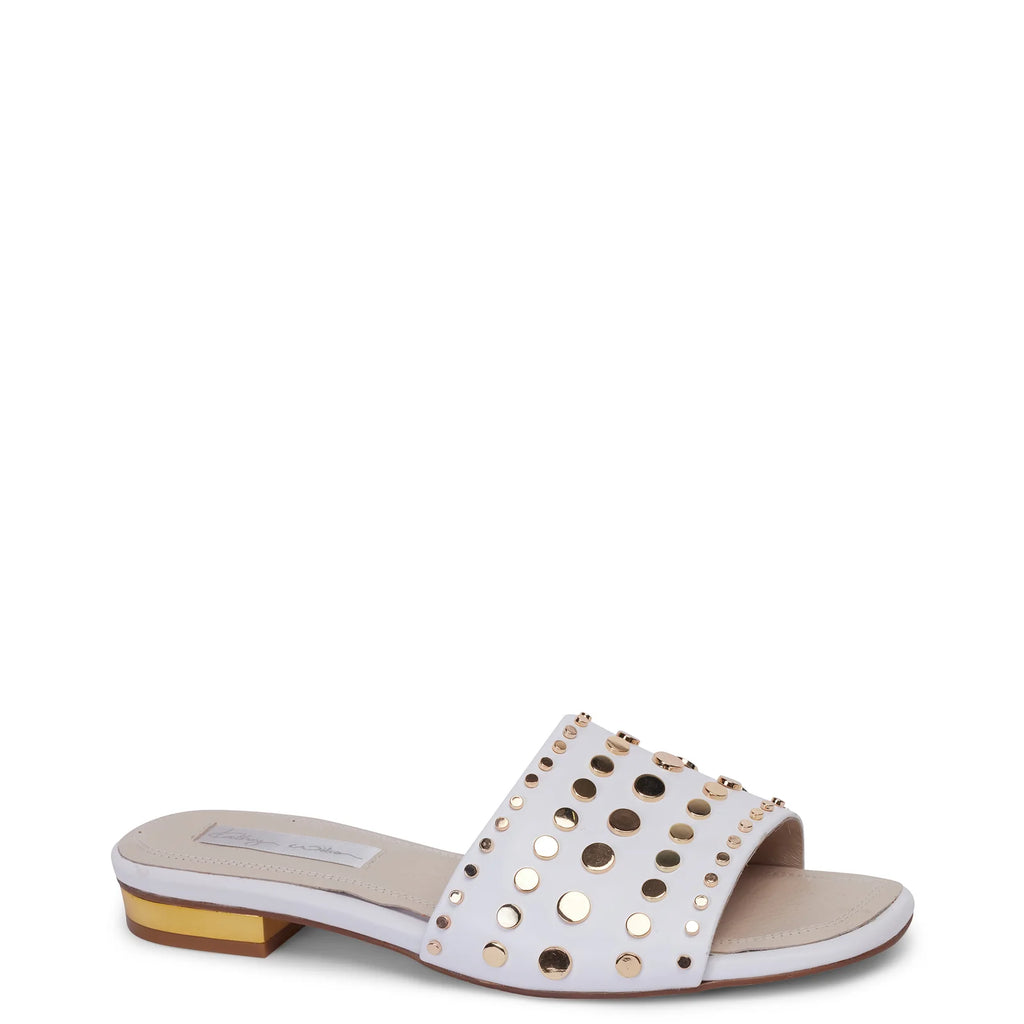 Add a pop of glam to your feet! Refined from KW favourites, the Eden Slide is adorned with gold studs across a simple leather upper. Finished with a pop of gold on a subtle, elevated heel and a comfortable sole, we know you will love wearing Eden to the office, Sunday brunch with the girls and beyond.