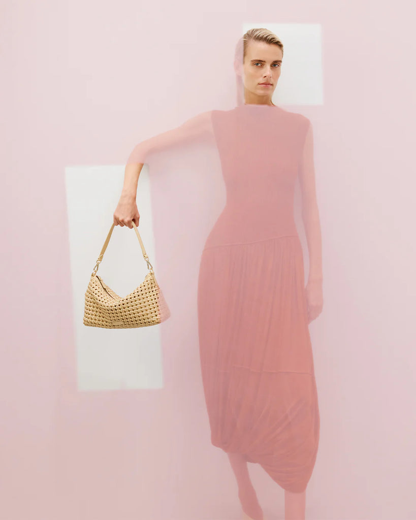 Her luxurious braided texture brings an elevated resort sensibility to every outfit, making her the perfect companion from day to night. Claudia adapts to your lifestyle with her detachable shoulder handle and crossbody strap. The perfect sartorial companion that transitions effortlessly from poolside to evening soirées