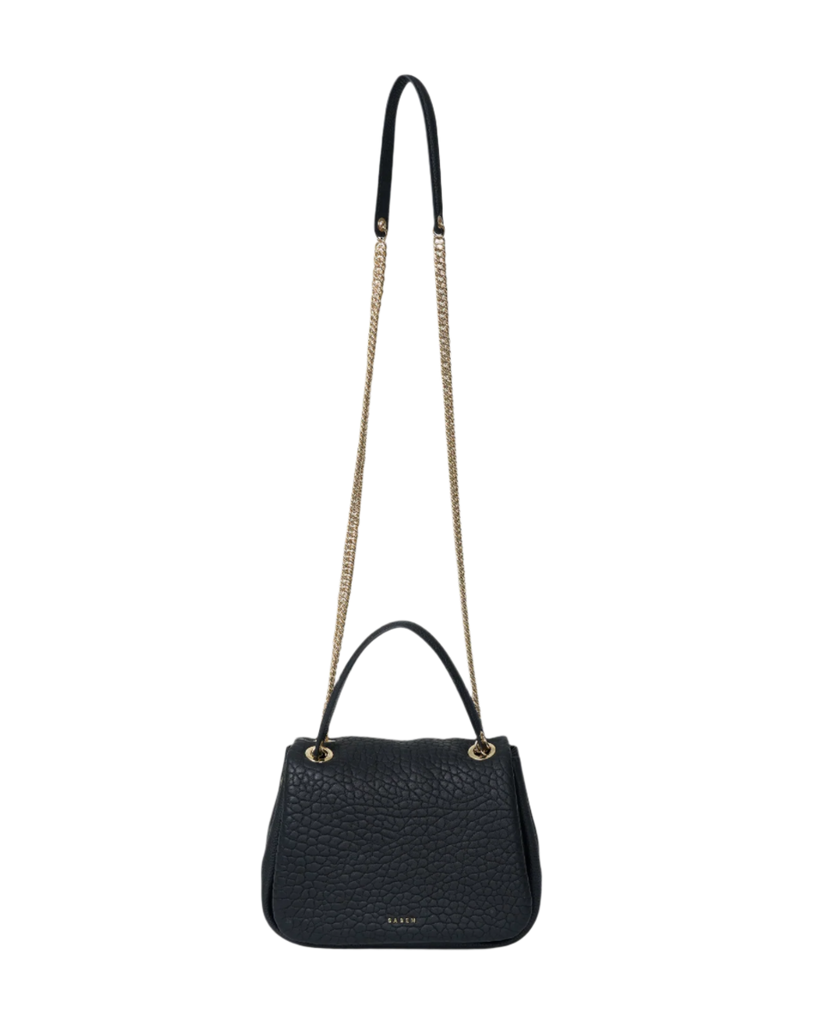 This boxy beauty features SABEN's signature Bubble Leather—a distinctive heavy grain texture for maximum impact. The front flap closure and chain handle details add softly-structured sophistication, while the bubble texture brings an unmistakable edge to transform any look. Flo is for the woman who knows that size doesn't dictate presence.