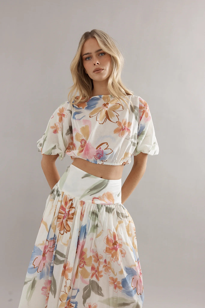 Our Best seller, The Capri Skirt is back this summer in the dreamy Tea Party Floral print. Featuring a wide waistband for a firm and flattering fit. Pair it with the Bubble or a crisp white tank.