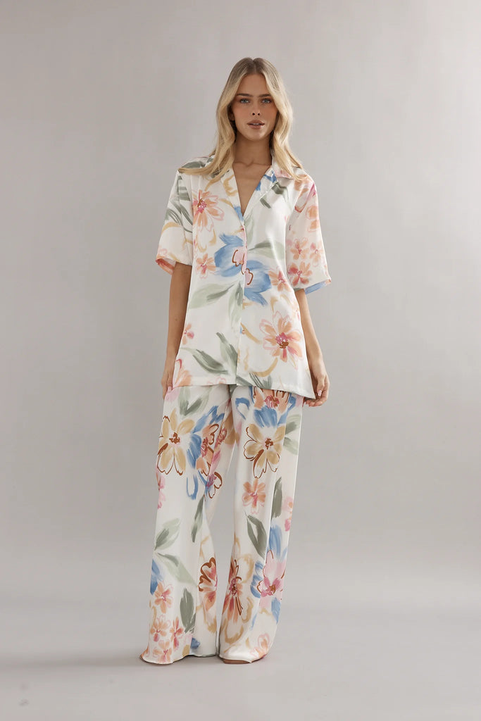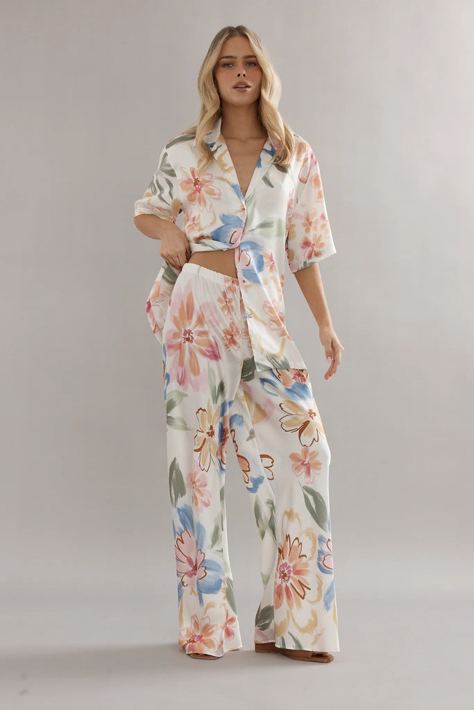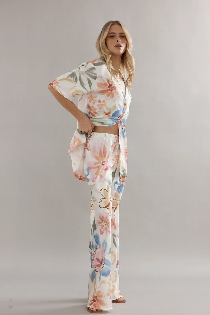 The Chelsea Pants bring effortless cool in Tea Party Floral Satin. Cut on the bias with an elasticated waistband for all-day comfort. Perfectly paired with the Ibiza Shirt or a white tee.
