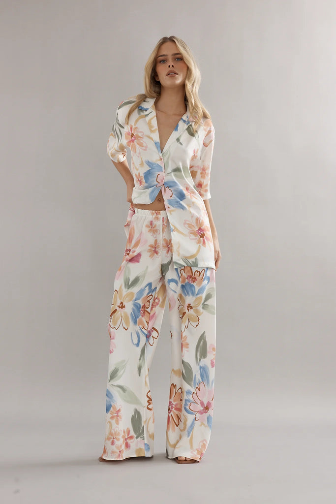 Caitlin Crisp Chelsea Pant Tea Party Floral Satin