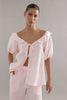 Our delicate little darling blouse in a pink Linen. Your summer go-to to throw on and go. Pair with the matching Jimmy Joggers for the ultimate summer combo.