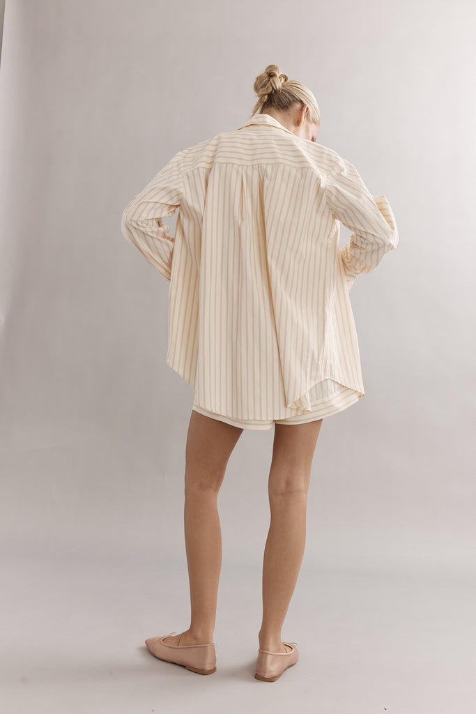 She's back! The Vienna shirt, an oversized design offers a modern, boxy fit, with a delicate frill detailing on the cuffs. Perfect for layering or wearing on its own, the Vienna Shirt is a versatile must-have for any season. We recommend taking your standard size for an oversized fit!