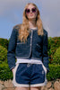The Cropped Bouclé Jacket reimagines a timeless silhouette with a modern KW sensibility. Woven with a subtle metallic sheen, it offers both polish and versatility in deep navy. The boxy cut is balanced by intricate trim and silver-tone buttons, while front pockets bring a functional finish. A piece that moves effortlessly between statement and staple.