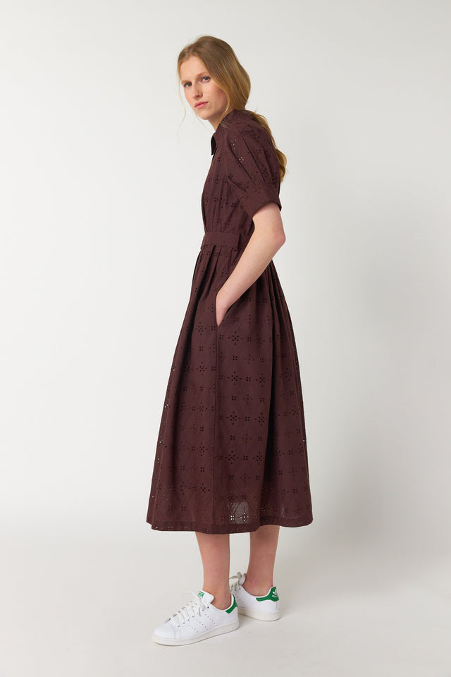 Our Diamond shirt dress is made from 100% cotton and is an easy fit. Featuring covered buttons and practical side pockets, it comes with a cotton slip. Wear it with or without it's matching belt.