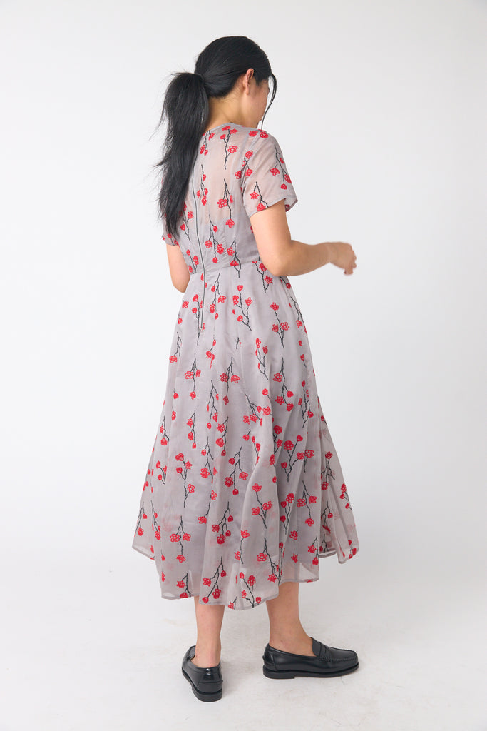 Those in the know will thrill to see Sybilla in our collection again. With it's semi fitted bodice, shaped waist and softly flaring skirt and sleeves, Sybilla is supremely flattering. The all-over embroidery is our signature rose designed by Tom Conway.