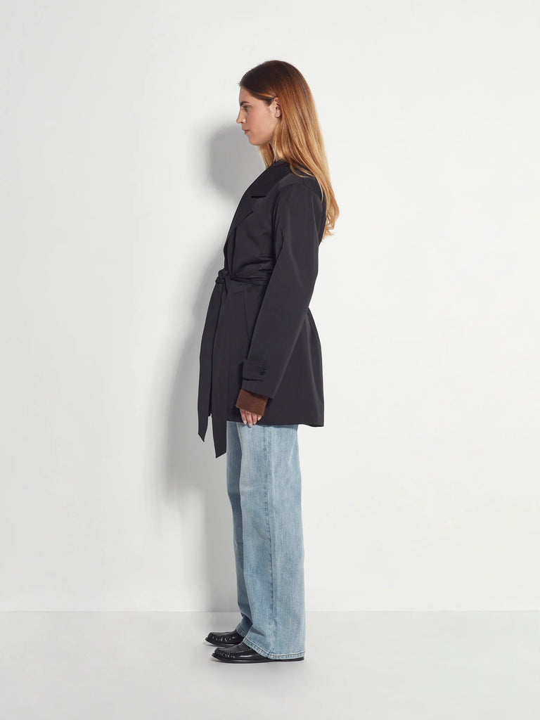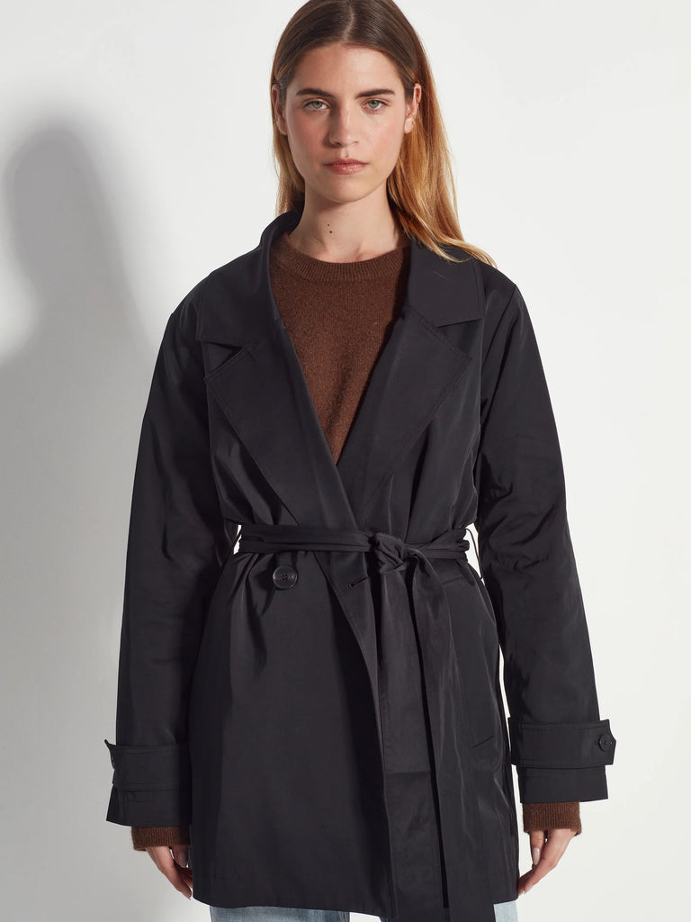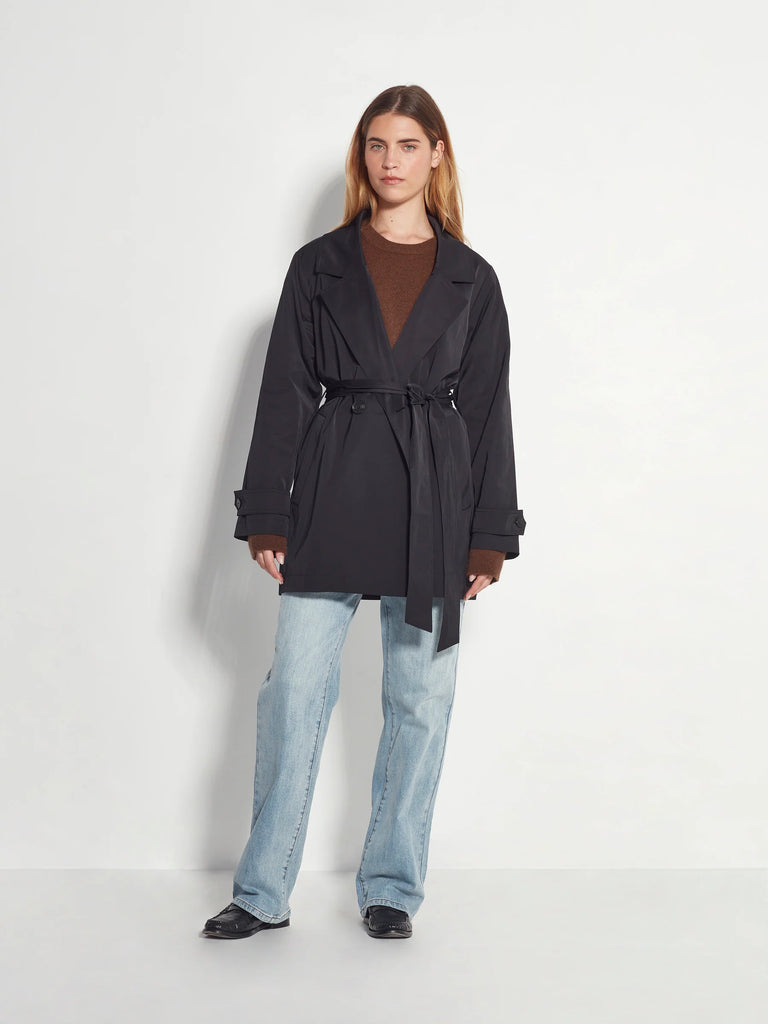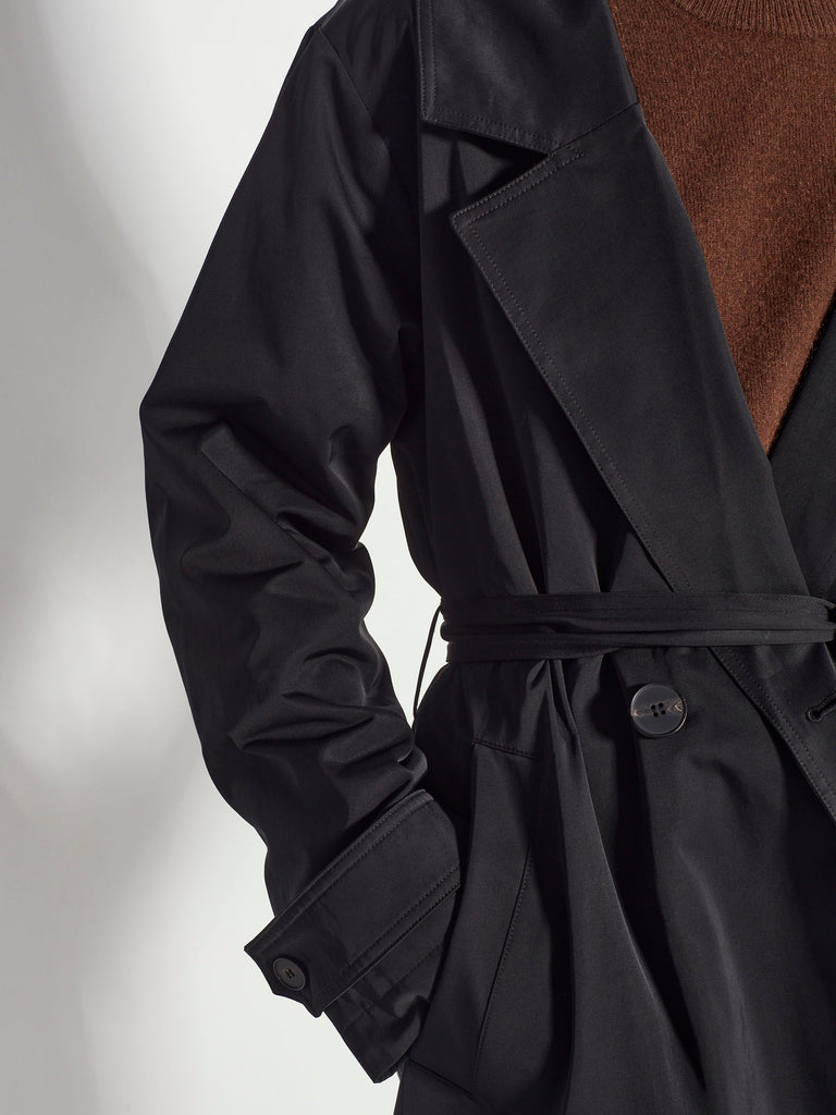 The Del Trench is a short trench style, in an elevated fabric with a slight sheen. A twist on a classic, the Del Trench will be an easy layer to have with you this autumn, no matter the occasion.