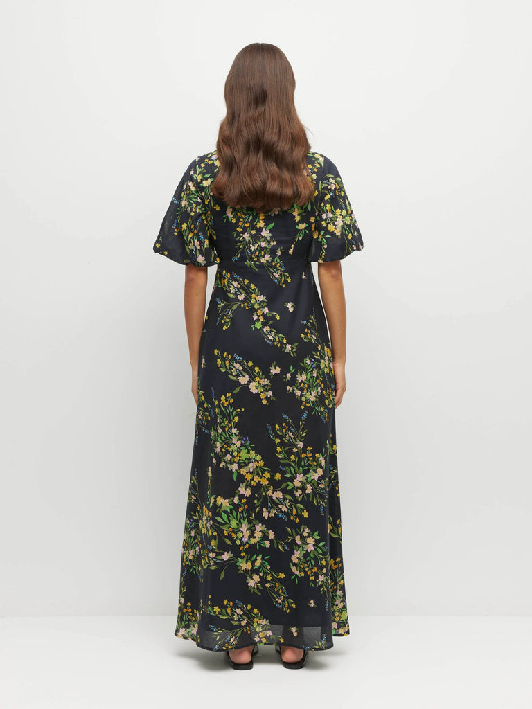 Flattering and feminine, the Luciana Dress is an elegant full-length maxi-dress cut to drape over your frame and have you ready for your next event. The cotton of our exclusive Dark Garland print softens the style and makes it an adaptable piece for the summer months ahead.