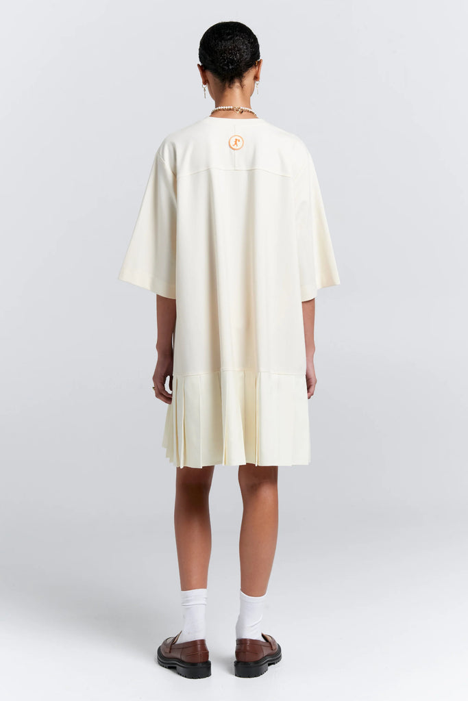 The Rally Dress combines a classic boxy t-shirt silhouette with a neat pleated skirt, creating a modern yet elegant shape. With its easy-to-wear silhouette and sporty detailing, the Rally Dress offers playful elegance. The athletic knit fabric ensures the dress retains its shape, offering both comfort and structure.