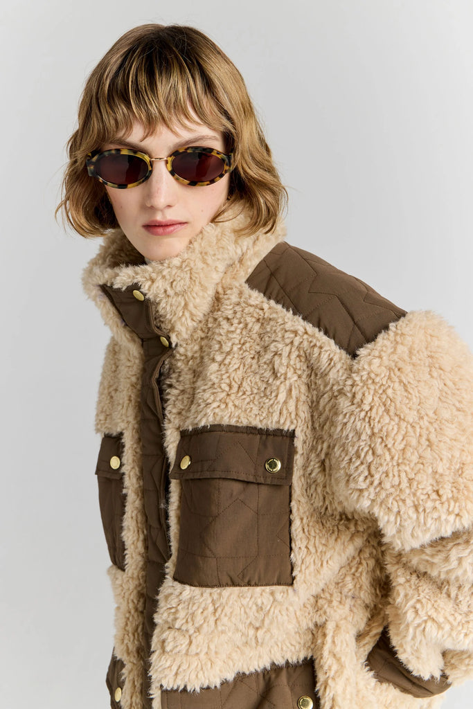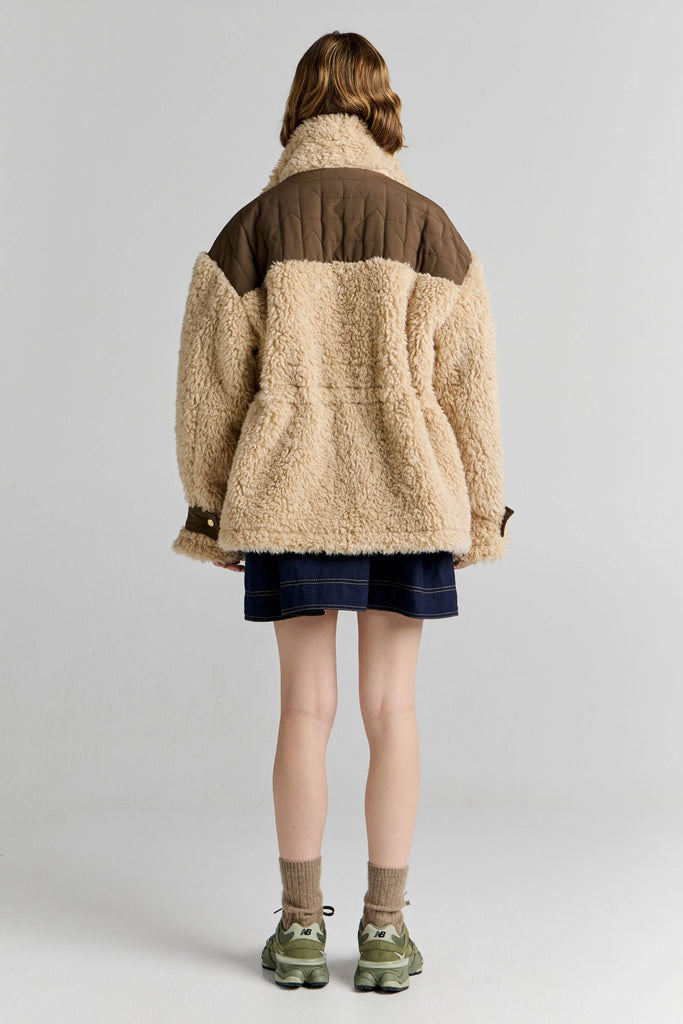 The Summit Jacket is a utilitarian take on a classic oversized fur jacket, crafted in teddy faux shearling for a plush, tactile finish. Contrast panelling brings a modern edge, while an internal drawstring allows for adjustable shaping. The oversized silhouette ensures warmth and comfort, making it both functional and eye-catching – the perfect layer for cold-weather dressing.