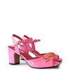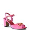 The Scarlett Heel captures the mood of the 1970s with its patent leather shine and squared peep toe. Set on a mid block heel, this sandal is detailed with polished gold horsebit hardware and a squared peep toe. The adjustable ankle strap adds ease and balance, making it a versatile choice for day or night. Style with cropped denim or your favourite slip dress this Summer.