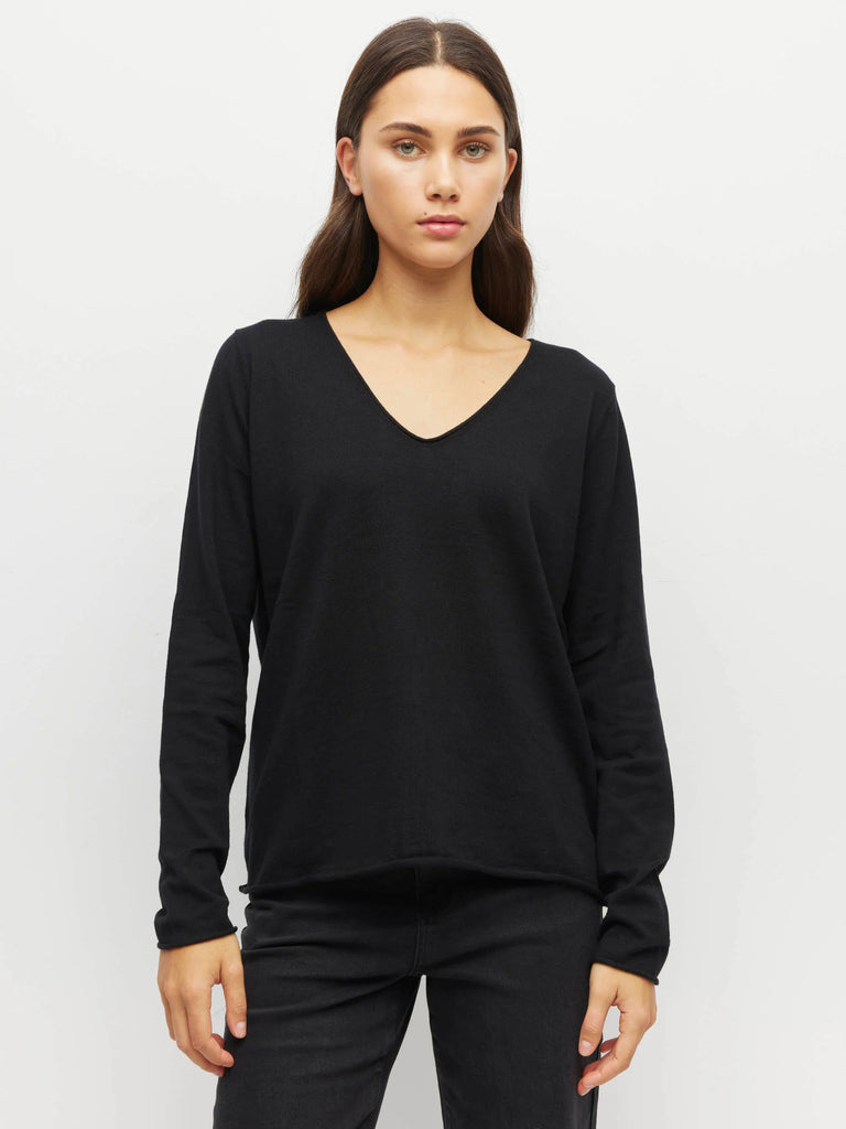 JHL V-Neck L/S T Fine Cotton Cashmere Black