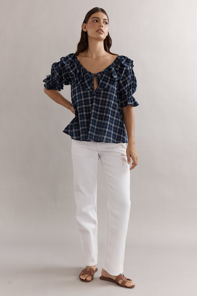 Fulfilling all of your cottage-core dreams, the Hazel Blouse has it all. Delicate frills, soft puff sleeves and a checkered pattern - perfect for frolicking in a meadow or afternoon tea in the sun. With a tie close feature at the front, this top will take you through the warm days to the cooler ‘crisp’ evenings.