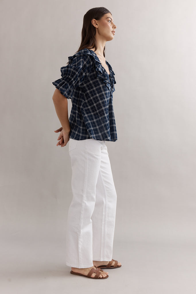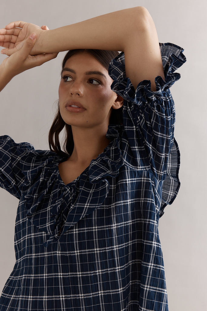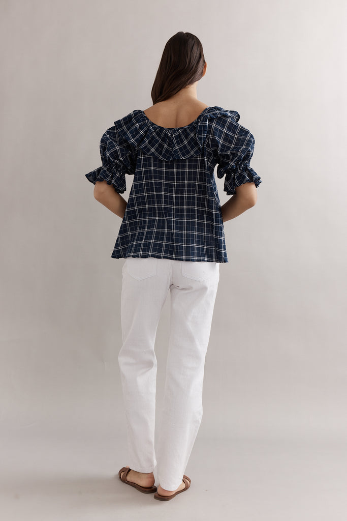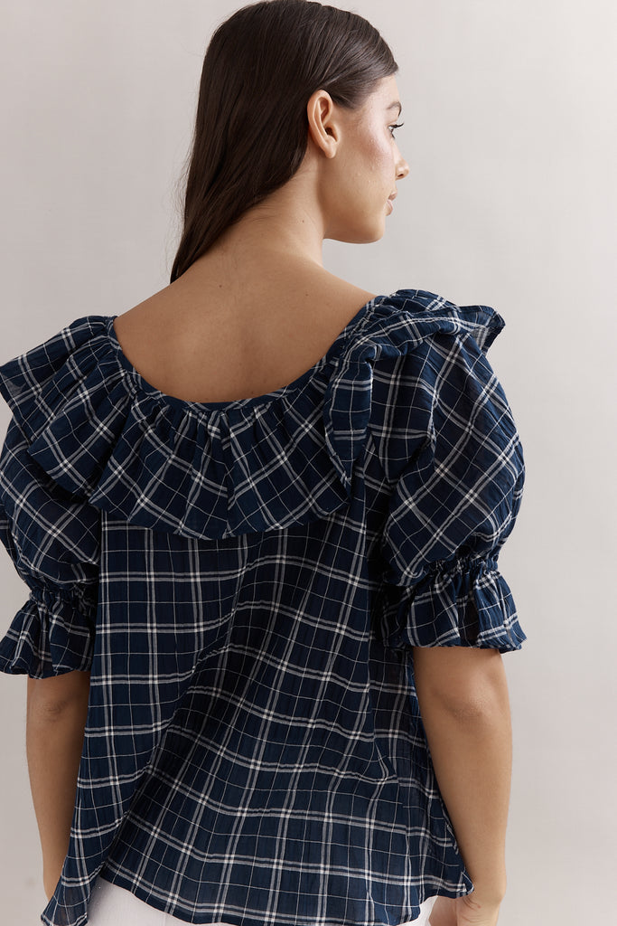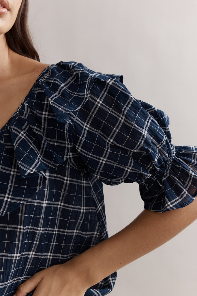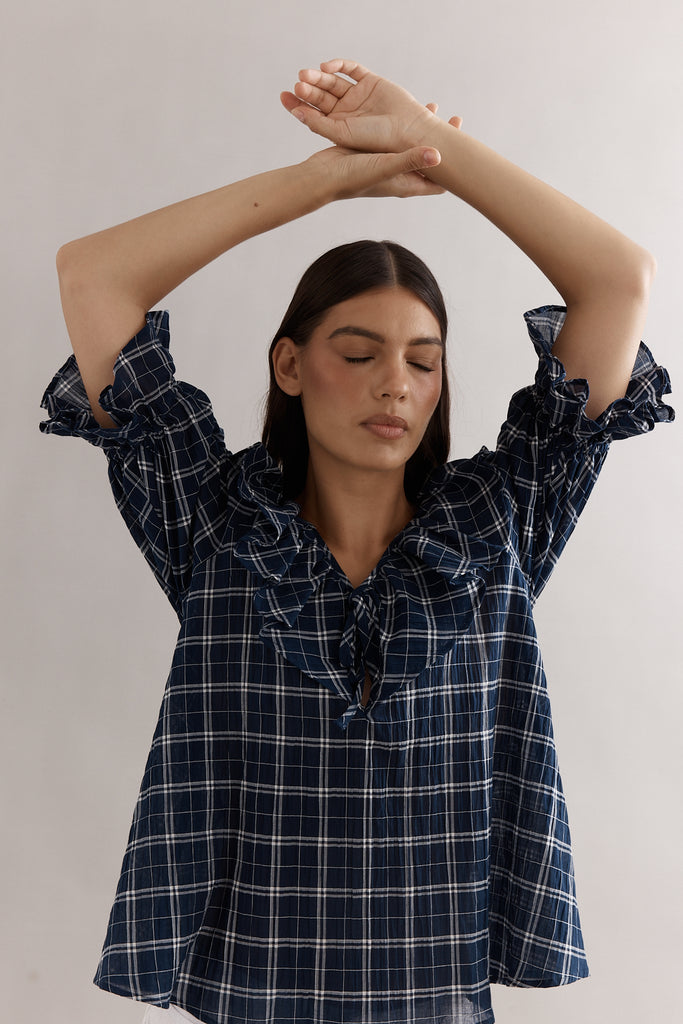 Caitlin Crisp Hazel Blouse Navy Check
