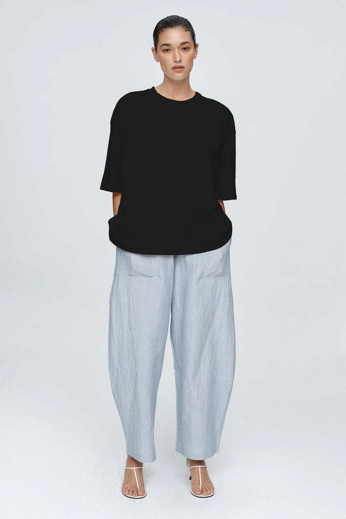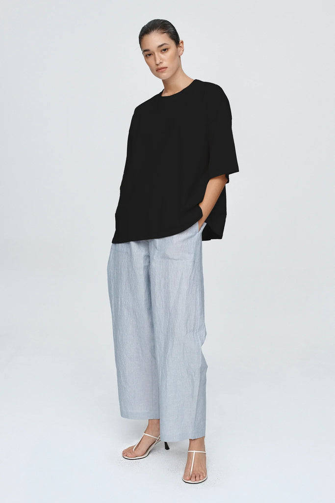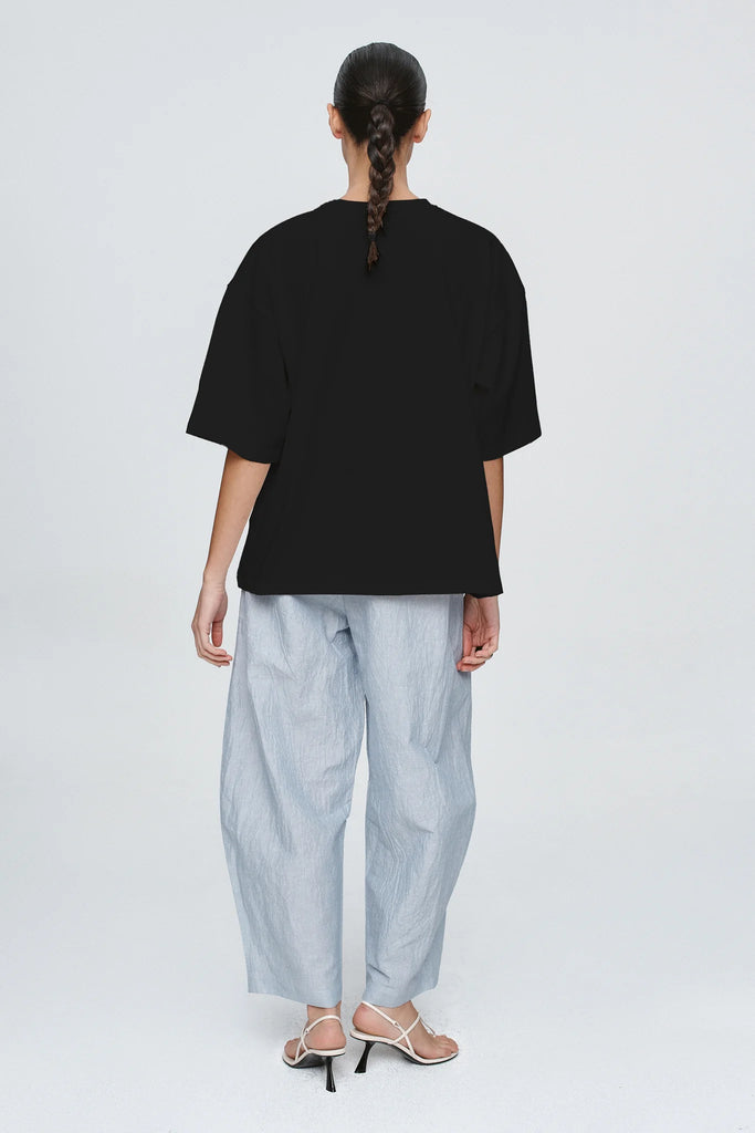 The Austin Tee is crafted in 100% Cotton for a breathable, soft hand feel. Designed with an oversized, boxy shape, it features a round neckline, drop shoulders and elongated sleeves that fall just beyond the elbow.