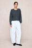 Babette cardigan in our Perino blend yarn, round neckline, balloon sleeves, ribbed finish, and shell button closure at the centre front.
