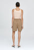 Relaxed-fit shorts crafted from a lightweight 100% cotton selected for its crisp structure and comfort. The design features a fully elasticated waistband for ease of wear and flexible fit. A mock fly is incorporated at the centre front to reference traditional tailoring details while retaining a pull-on construction. The Ren short is equipped with oversized front pockets and finished with a topstitched deep hem.