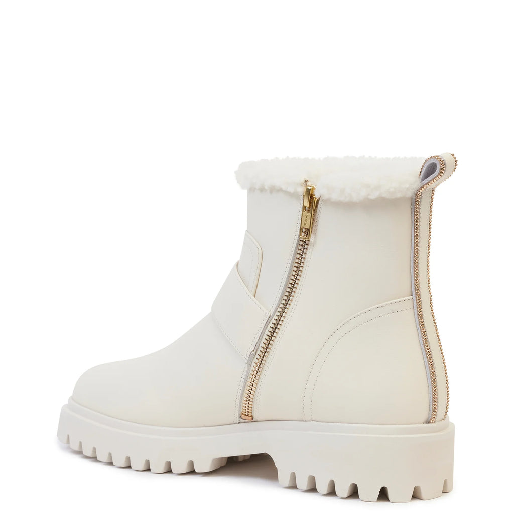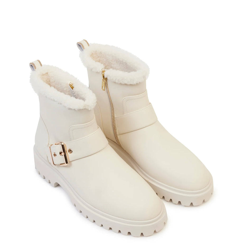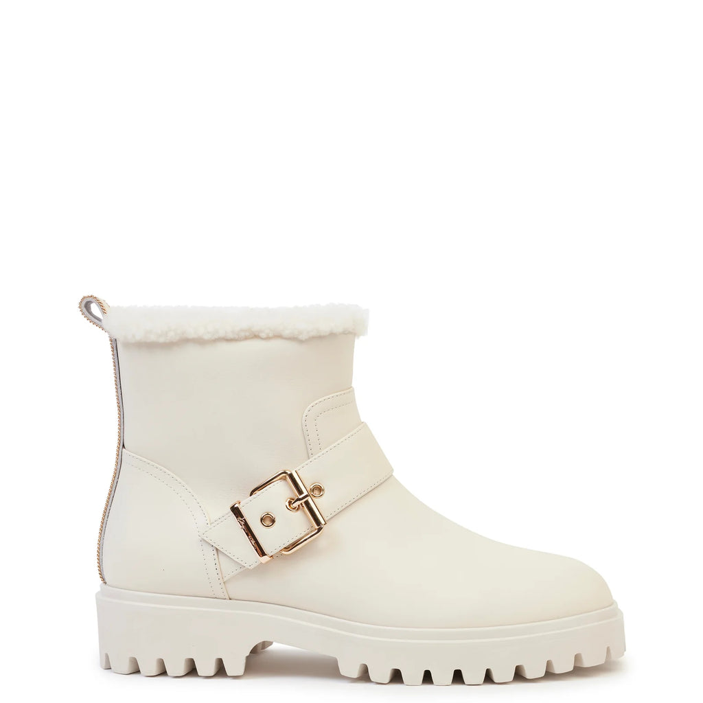 With a subtle utilitarian vibe, the Davina Boot is luxuriously lined in sheepskin for the ultimate style and comfort this season. Detailed with a statement buckle and strap across the upper, and delicate gold chain detail, we know you’ll love wearing Davina for years to come…