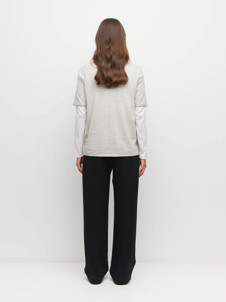JHL Crew T Fine Cotton Cashmere Soft Grey Marle