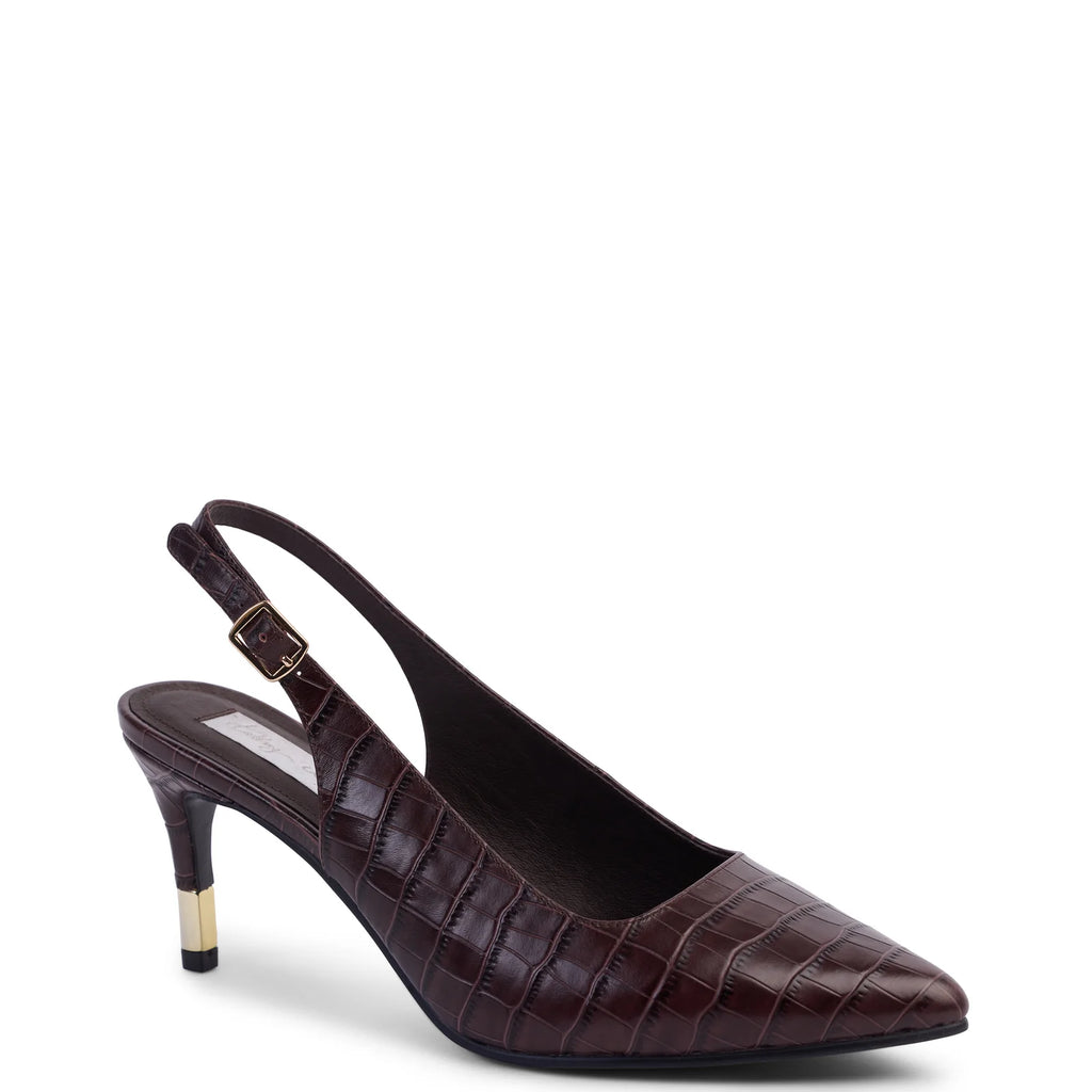 Elegant and refined, the Estelle Slingback is designed with a pointed toe and slender heel for timeless sophistication. Crafted in premium leather and finished with an adjustable strap, this versatile style pairs effortlessly with both tailored looks and evening ensembles.